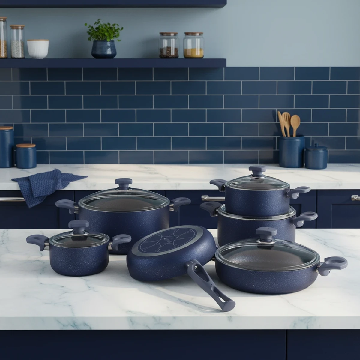 Riwald York 11 Pcs Dark Blue Granite Cookware Set 6501111-0116