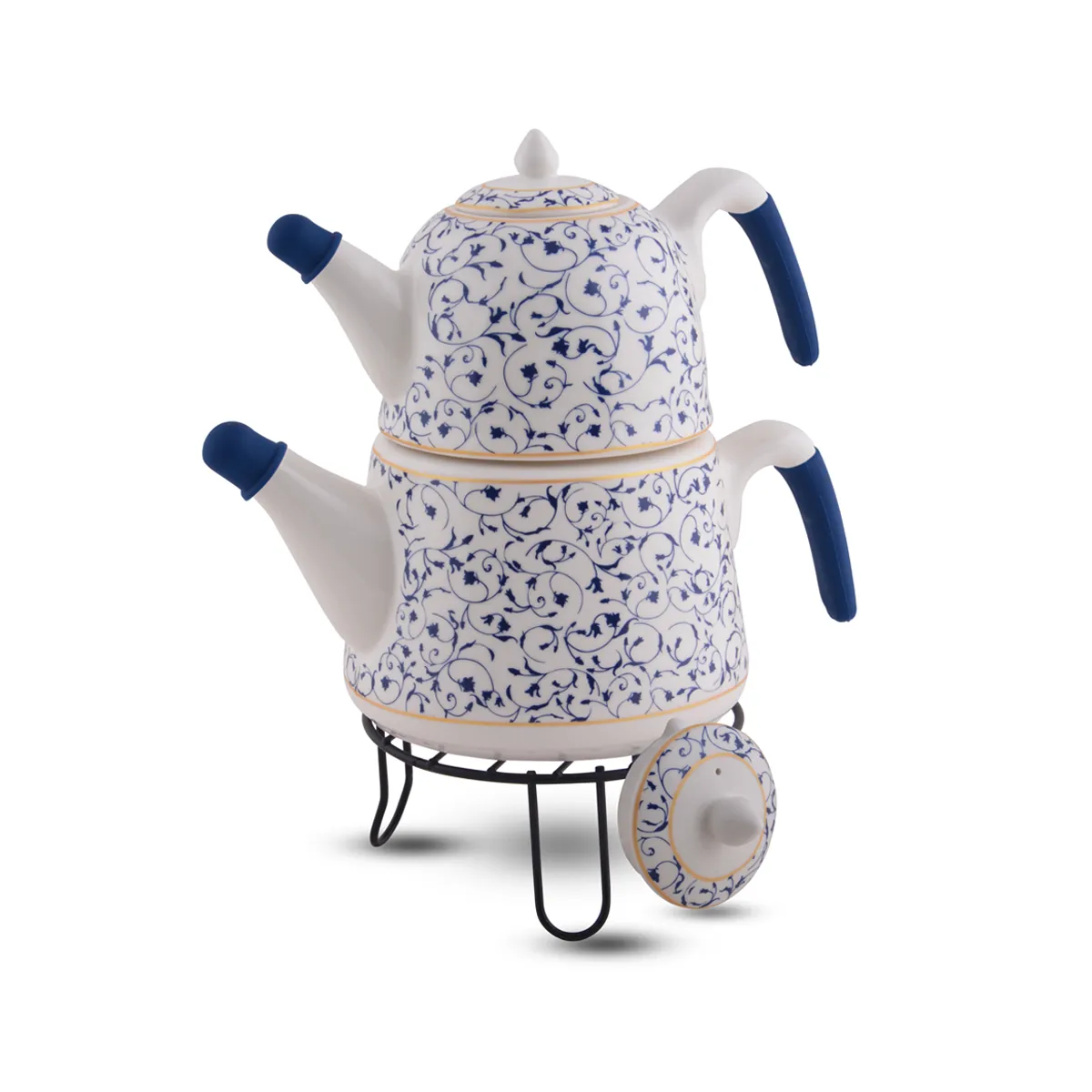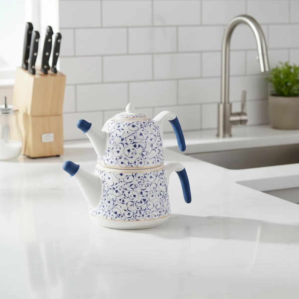 اگر به دنبال ترکیبی از زیبایی، کیفیت و کارایی هستید، سرویس کتری و قوری بیرمینگام ریوالد 6724112-1133 بهترین انتخاب برای تکمیل آشپزخانه شماست. این محصول با طراحی گلدار آبی روی چینی سفید و لعاب‌دار، نه تنها جلوه‌ای کلاسیک به فضای شما می‌بخشد، بلکه طعم اصیل و طبیعی چای را حفظ می‌کند. جنس چینی مرغوب این سرویس باعث انتقال یکنواخت حرارت و دوام بالا می‌شود. دسته‌های چینی آن، مقاوم به حرارت هستند و هماهنگی کاملی با بدنه دارند، که استفاده‌ای راحت و ایمن را برای شما فراهم می‌کنند. از ویژگی‌های کاربردی این محصول، وجود پایه وارمر فلزی مشکی رنگ است که به شما امکان می‌دهد کتری و قوری را روی اجاق قرار دهید یا با استفاده از حرارت کم، چای خود را برای مدت طولانی گرم نگه دارید. علاوه بر این، خود کتری و قوری چینی را می‌توان جداگانه به صورت مستقیم روی شعله گاز قرار داد که دم کردن چای را سریع‌تر و آسان‌تر می‌کند. این محصول با حجم قوری ۱ لیتر (مناسب برای ۳ تا ۴ نفر) و حجم کتری ۲ لیتر، انتخابی ایده‌آل برای هر خانه‌ای است. با کتری و قوری بیرمینگام ریوالد، لحظات لذت‌بخش و شیکی را در کنار عزیزانتان تجربه کنید.