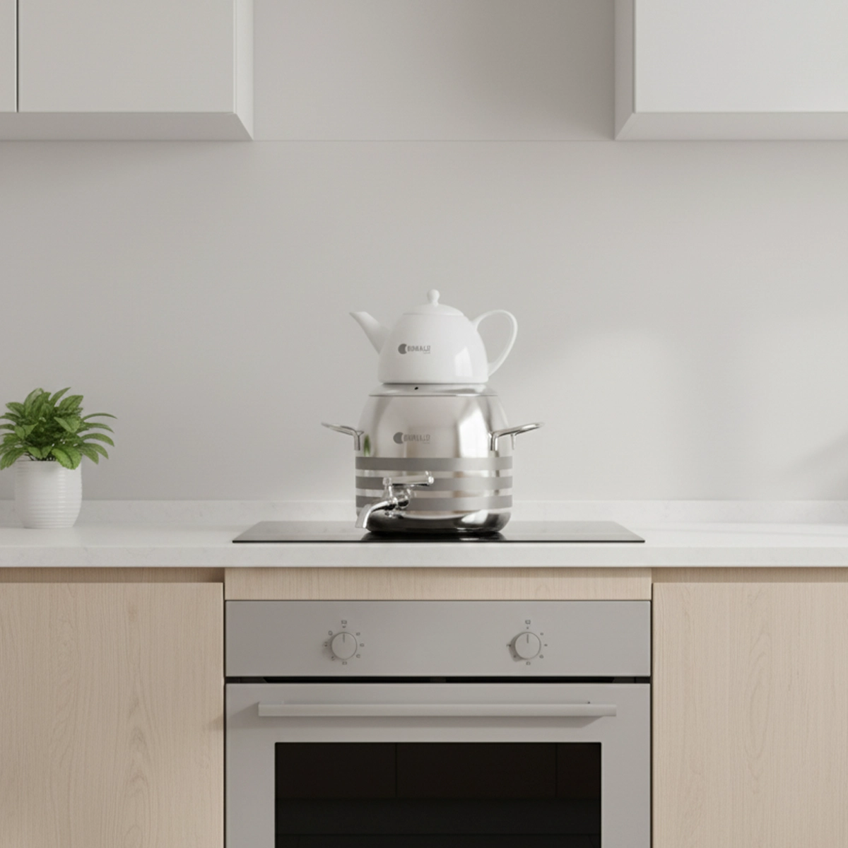 سماور روگازی لیورپول ریوالد 6818125-1022 یک سرویس کتری و قوری از برند مشهور و باکیفیت ریوالد (Riwald) است که با ترکیب جنس استیل و چینی، طراحی مدرن و کاربردی را با دوام بالا تلفیق کرده تا تجربه بهتری از آمادهسازی چای را فراهم آورد. کتری این محصول از استیل ضد زنگ با کیفیت بالا از آلیاژ ۱۸/۱۰ کروم-نیکل ساخته شده که در برابر زنگزدگی و خوردگی بسیار مقاوم است و ظرفیت آن ۳ لیتر میباشد. قوری آن نیز از جنس چینی مرغوب با ظرفیت ۱ لیتر است که طعم و عطر چای را به خوبی حفظ میکند و یکی از ویژگیهای منحصر به فرد آن، مقاومت در برابر حرارت مستقیم است؛ به طوری که میتوان آن را به صورت جداگانه و بدون نگرانی از شکستن، مستقیماً روی شعله گاز قرار داد.
