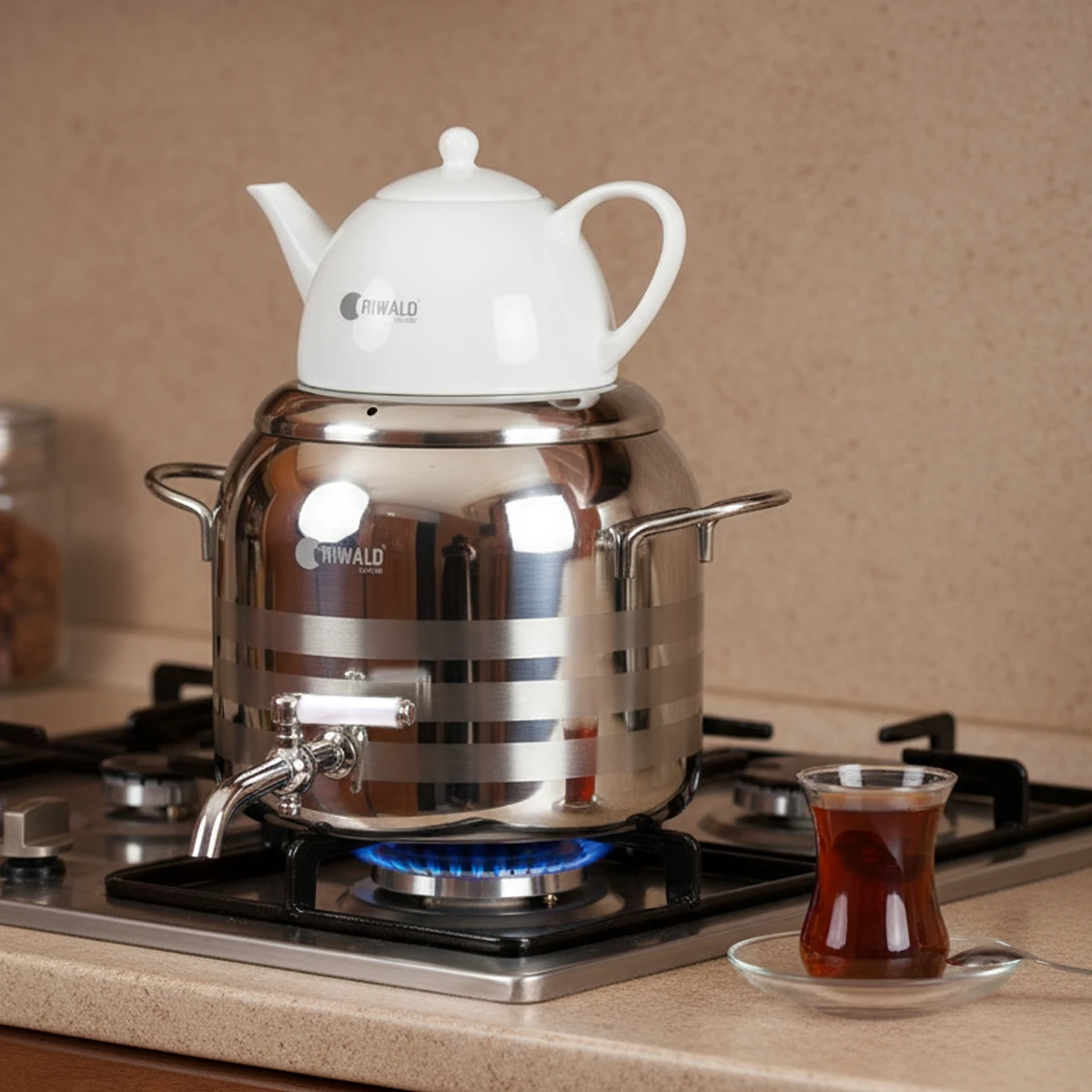 سماور روگازی لیورپول ریوالد 6818126-1022 یک سرویس کتری و قوری از برند مشهور و باکیفیت ریوالد (Riwald) است که با ترکیب جنس استیل و چینی، طراحی مدرن و کاربردی را با دوام بالا تلفیق کرده تا تجربه بهتری از آمادهسازی چای را فراهم آورد. کتری این محصول از استیل ضد زنگ با کیفیت بالا از آلیاژ ۱۸/۱۰ کروم-نیکل ساخته شده که در برابر زنگزدگی و خوردگی بسیار مقاوم است و ظرفیت آن ۳ لیتر میباشد. قوری آن نیز از جنس چینی مرغوب با ظرفیت ۱ لیتر است که طعم و عطر چای را به خوبی حفظ میکند و یکی از ویژگیهای منحصر به فرد آن، مقاومت در برابر حرارت مستقیم است؛ به طوری که میتوان آن را به صورت جداگانه و بدون نگرانی از شکستن، مستقیماً روی شعله گاز قرار داد.
