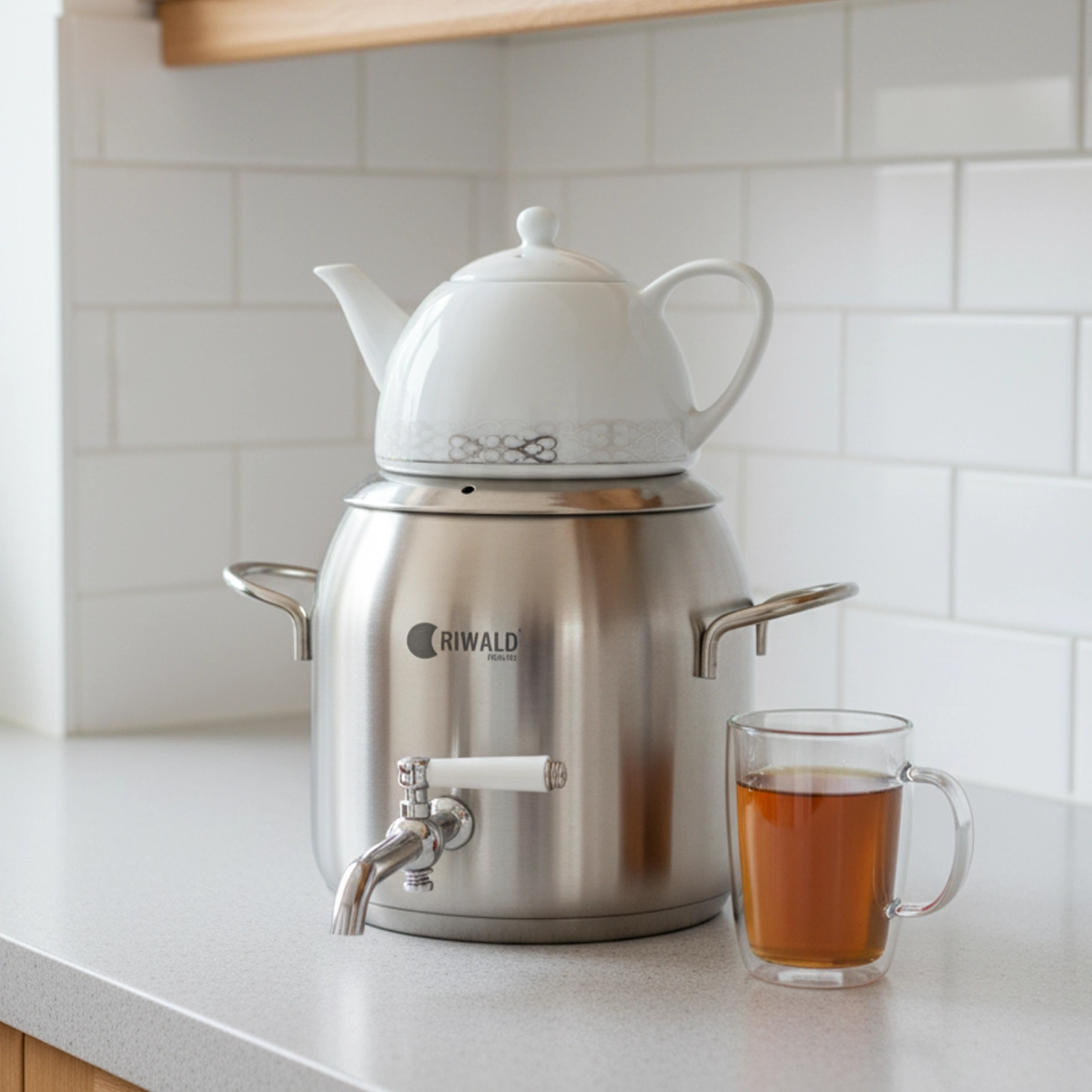 سماور روگازی لیورپول ریوالد 6818165-1020 یک سرویس کتری و قوری از برند مشهور و باکیفیت ریوالد (Riwald) است که با ترکیب جنس استیل و چینی، طراحی مدرن و کاربردی را با دوام بالا تلفیق کرده تا تجربه بهتری از آمادهسازی چای را فراهم آورد. کتری این محصول از استیل ضد زنگ با کیفیت بالا از آلیاژ ۱۸/۱۰ کروم-نیکل ساخته شده که در برابر زنگزدگی و خوردگی بسیار مقاوم است و ظرفیت آن ۳ لیتر میباشد. قوری آن نیز از جنس چینی مرغوب با ظرفیت ۱ لیتر است که طعم و عطر چای را به خوبی حفظ میکند و یکی از ویژگیهای منحصر به فرد آن، مقاومت در برابر حرارت مستقیم است؛ به طوری که میتوان آن را به صورت جداگانه و بدون نگرانی از شکستن، مستقیماً روی شعله گاز قرار داد.