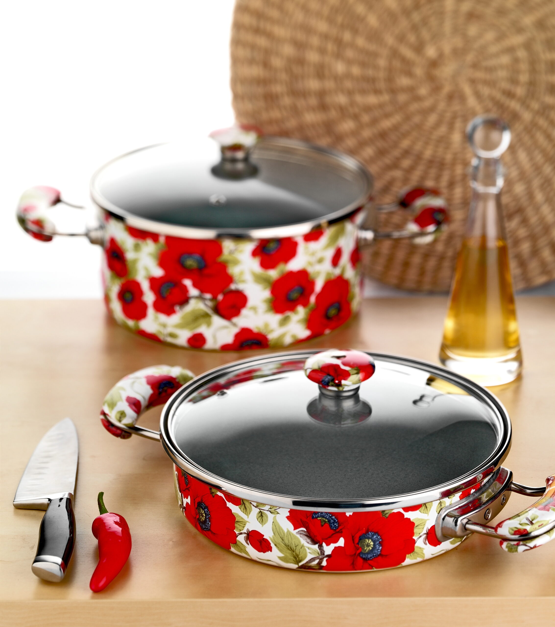 ظروف لعابی طرح دار ریوالد با دستگیره های از جنس چینی و پوشش نچسب به بازار جهانی ارایه شد و در بازار ایران نیز در بازار عرضه گردید.